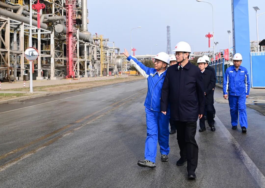 省委书记许昆林在中国石油抚顺石化公司,实地了解技术升级改造情况。